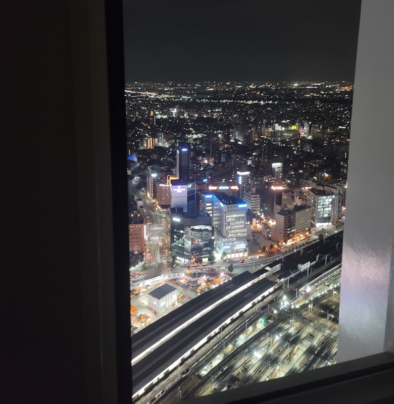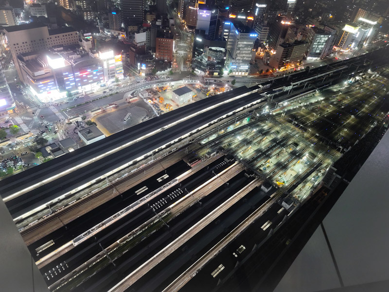 見下げると名古屋駅の何本もの線路が。これは面白い。酒飲みながら長時間ぼーっとみてられそう。